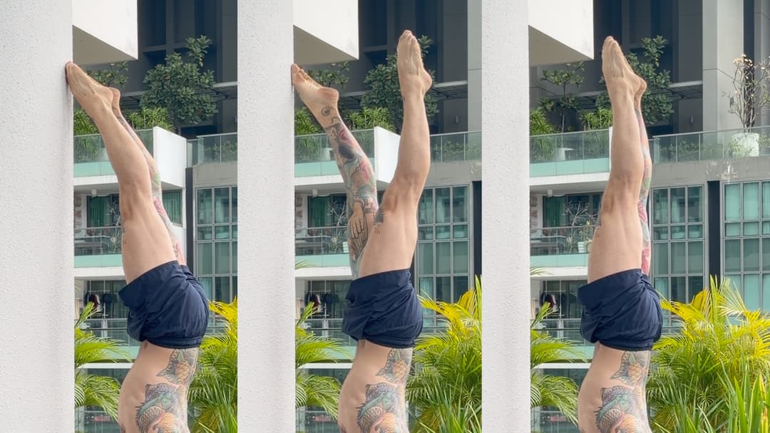 A midline and balance-focused wall drill designed to improve leg control and hip stability in handstand. By switching slowly near the wall, you’ll develop better stacking awareness, reduce twisting patterns, and build the control necessary for more confident freestanding work.