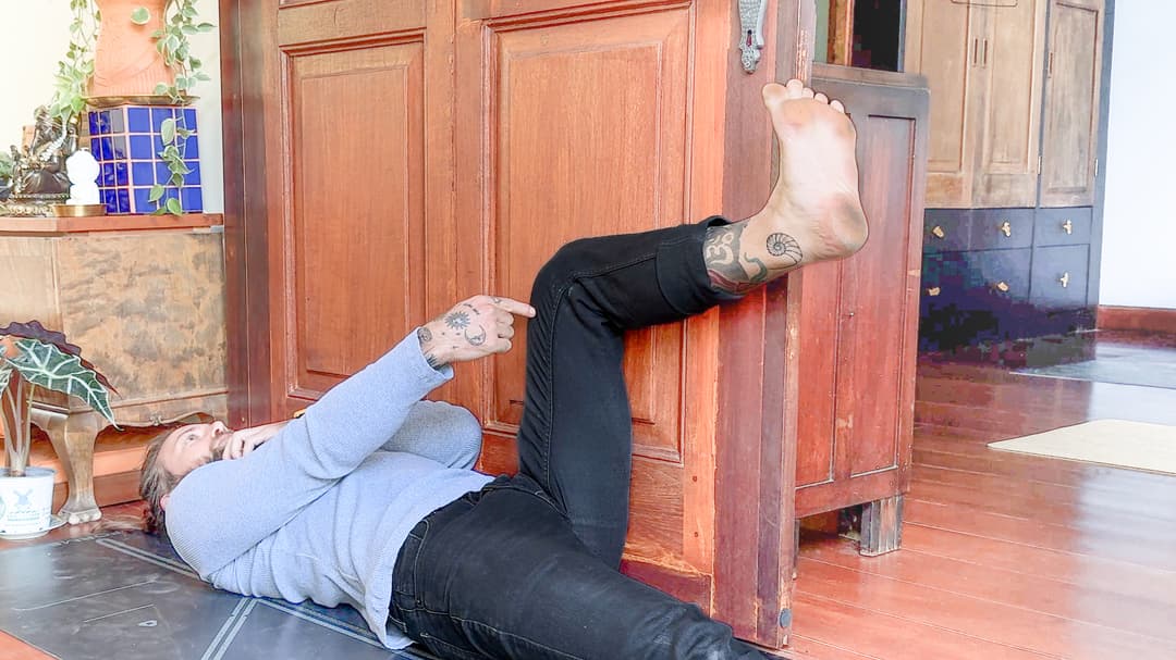 This isometric exercise targets the deep external rotators of the hip, supporting joint stability, pelvic control, and healthy movement patterns for walking, squatting, and single-leg work. Performed supine, it removes balance demands so you can focus purely on sensation, breath, and muscular engagement. By pressing gently outward into resistance without visible movement, you train the nervous system to access strength at end ranges without strain. Maintain steady breathing, moderate effort, and a calm upper body. Think of this as teaching the hip how to hold space—quietly and confidently.
