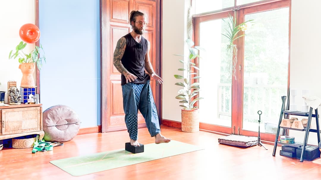 Single-leg balance is one of the most important foundational skills for stability and coordination. Standing on one foot challenges the muscles of the foot, ankle, and hip while also training the nervous system to maintain balance through small adjustments. In this drill, simply stand barefoot on one leg while maintaining an assortment of posture possibilities and steady breath. Focus on keeping the arch of the foot active and the pelvis level. Over time, this practice improves proprioception, strengthens stabilizing muscles, and enhances balance across many forms of movement.